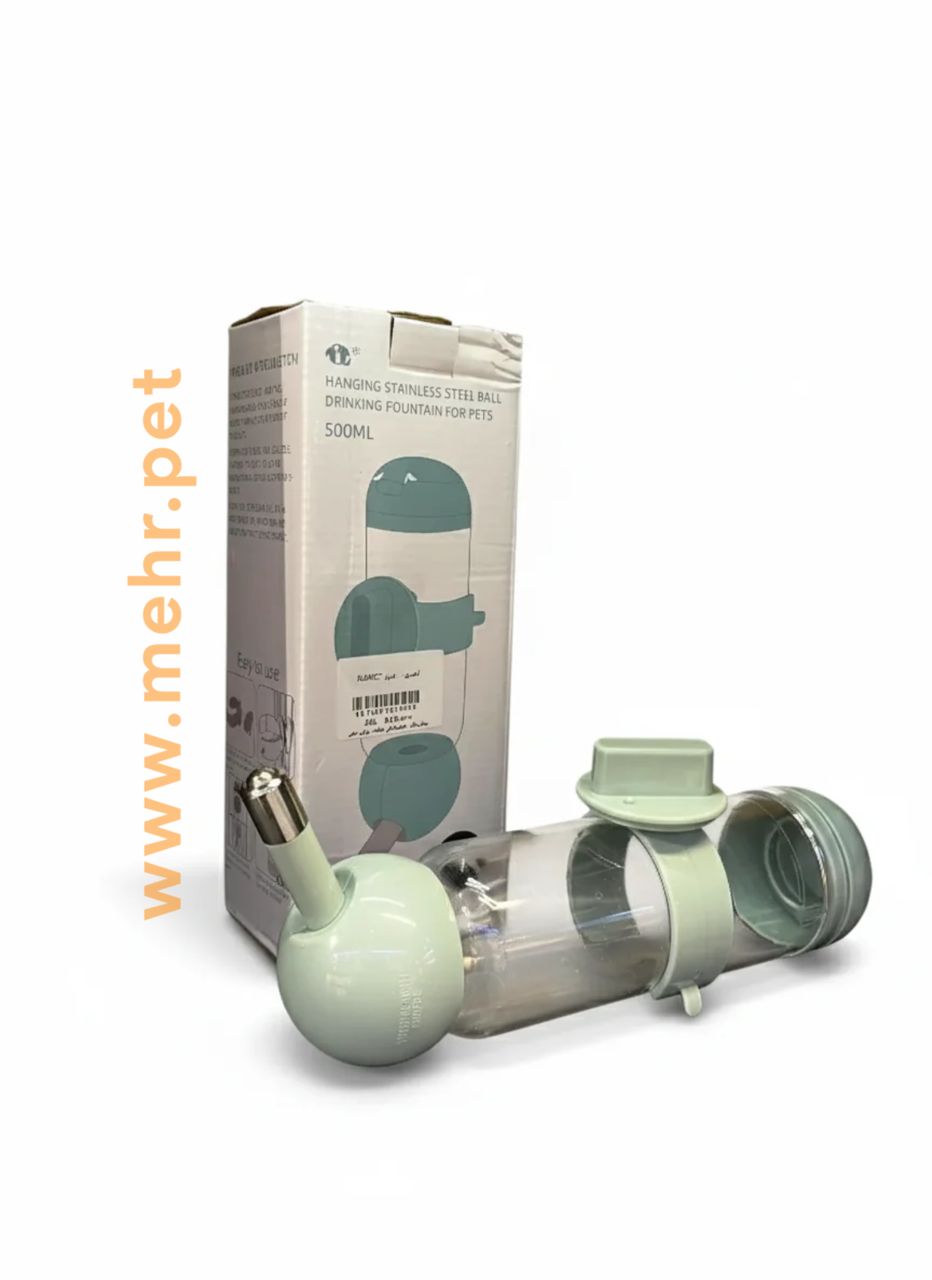 آبخوری ساچمهای (Ball Water Bottle) طوری طراحی شده که حیوان با لیسیدن ساچمه فلزی در سر لوله، مقدار کمی آب دریافت کنه. این مکانیسم چندتا مزیت داره: