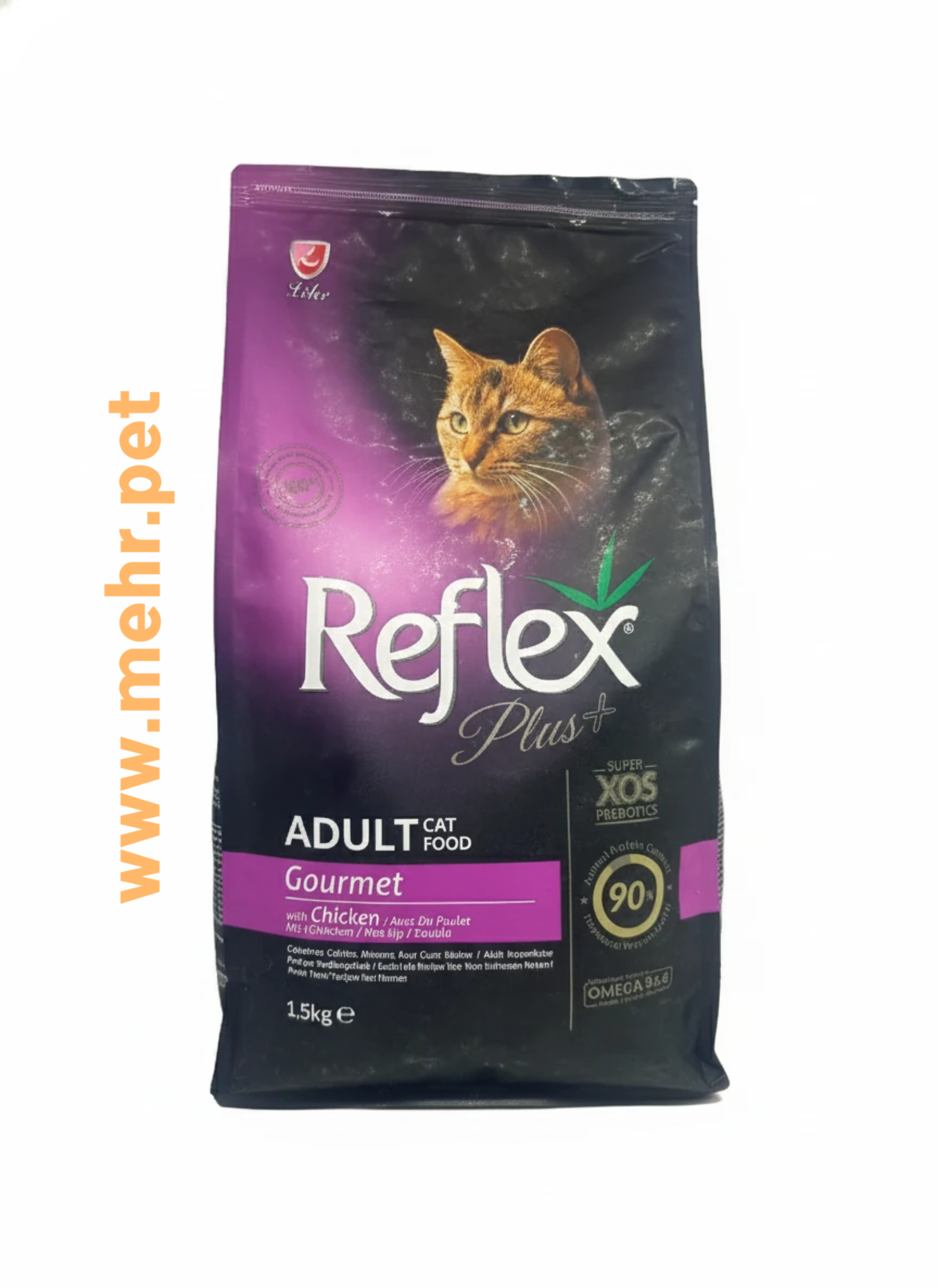 غذای خشک Reflex Plus Adult Cat Gourmet with Chicken یک وعدهی کامل و غنی برای گربههای بالغ است.